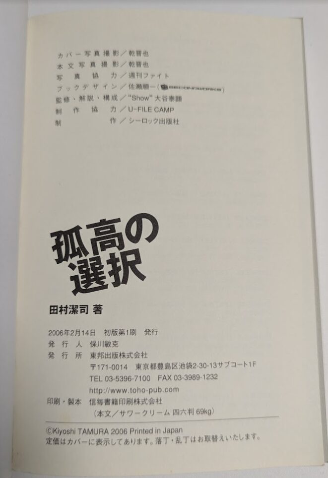 田村潔司を形成するいくつかの出来事【対新日本拒否、パトスミ戦、ヘンゾ戦、シウバ戦、高田戦、吉田戦】を読み解くキーワードがちりばめられているので、世紀末の格プロに熱狂した元ファンには絶対にオススメの1冊である。