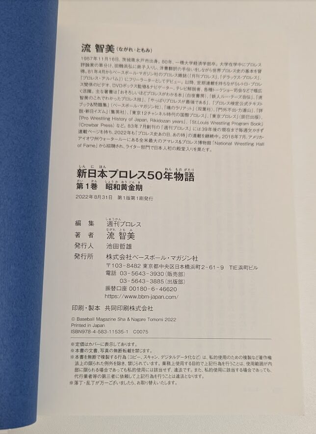 著者は流智美(ながれともみ)と読み、氏の姿を拝見するまでは勝手に女性だと思っていたが、プロレス史家/プロレス評論家のオッサンである(でもオッサンは結構イケメンだったりする)。