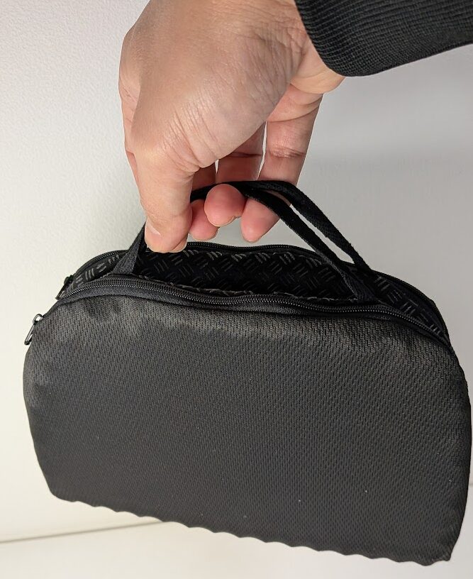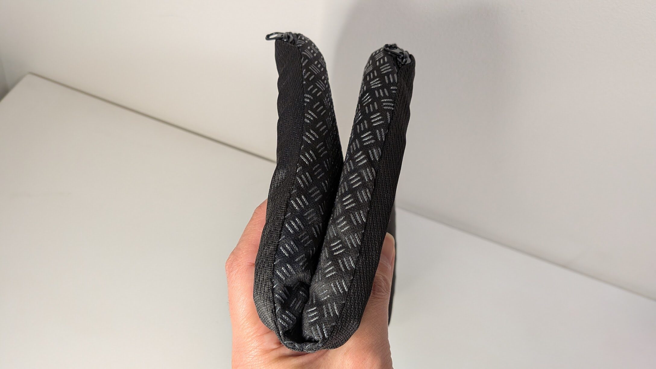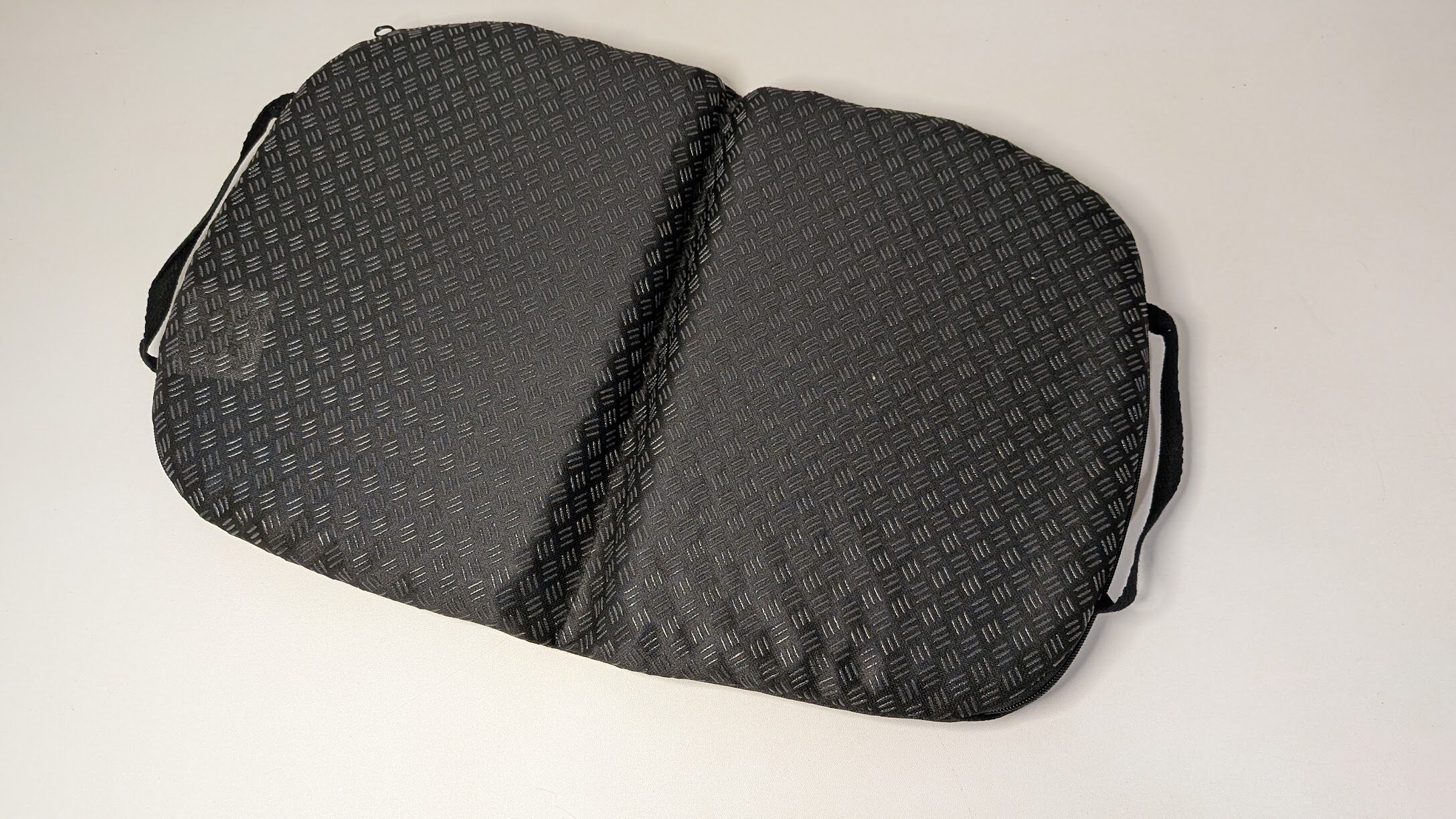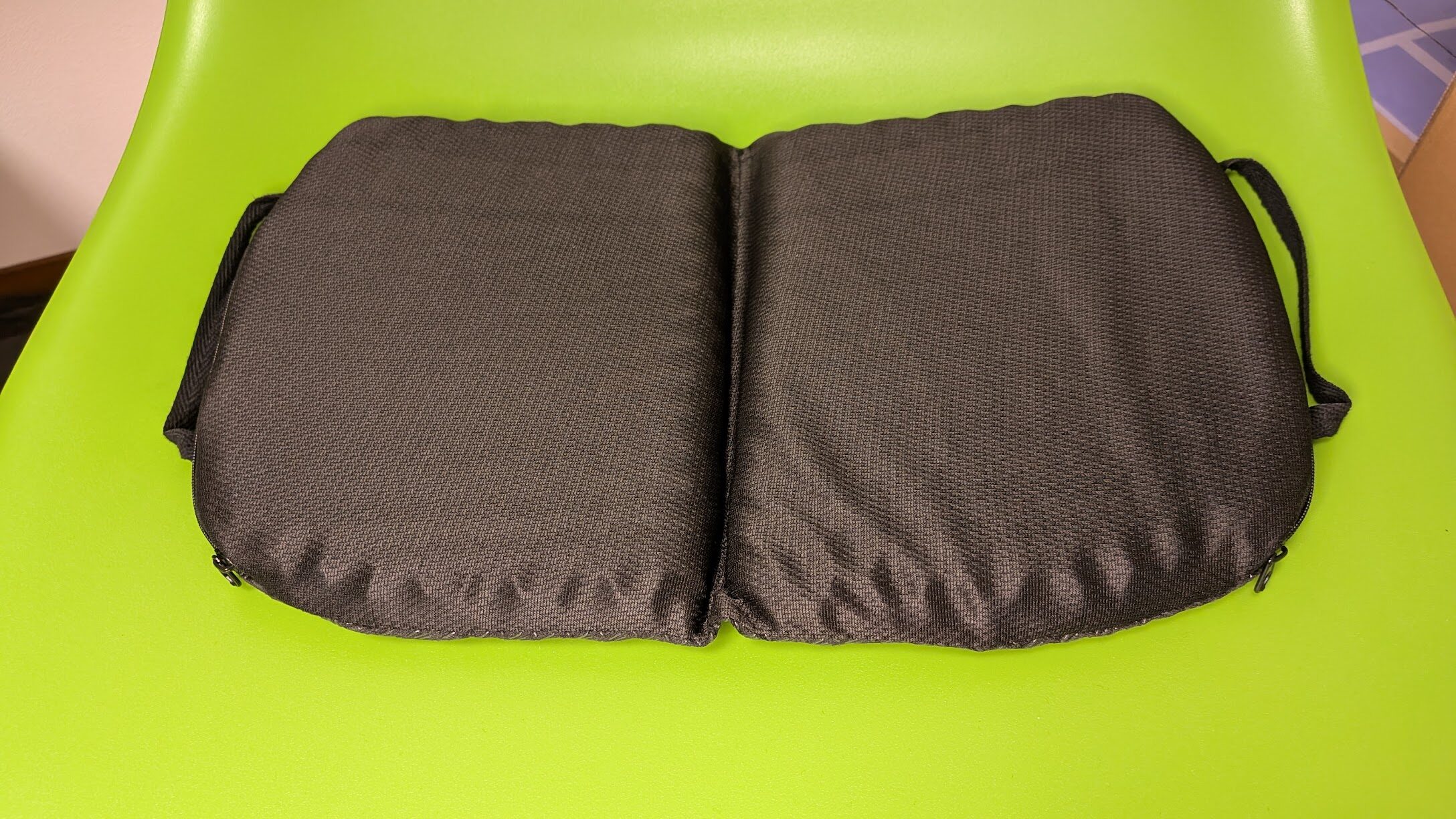 二つに畳むとかなりコンパクトです。これならクッション用の大きな袋など持って行かなくても、普段使いのリュックやトートバッグに入りますね