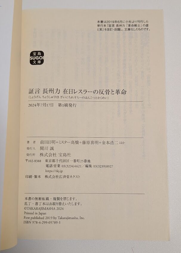 プロレスファンにはお馴染み、宝島社『証言』シリーズの長州力特集。